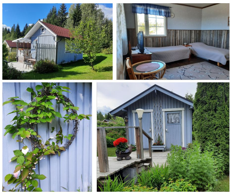 Puutarhakasvien runsaus täyttää tämän Kaunokki-mökkimme pihan. Sisällä mökissä on viihtyisä tupakeittiö ja makuuhuone. Pihassa erillinen huvimaja.